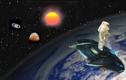 The Original picture only had the images of the spaceship and the Earth on it. I added the planets, the Sun from this week's exercise and an astronaut to the image. By the way, I especially made that blurred area around the Sun - it's the solar corona. Don't think that I forgot to erase it :)